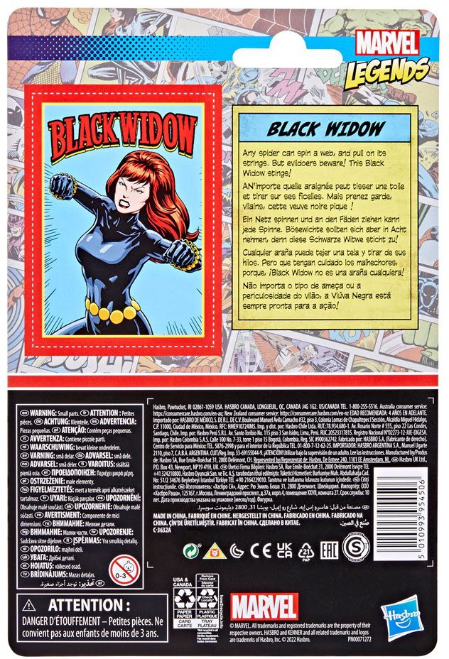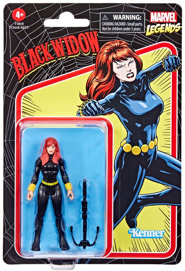 This quality 3.75-inch Legends Series Retro 375 Collection Black Widow figure features multiple points of articulation and grappling hook rifle accessory.