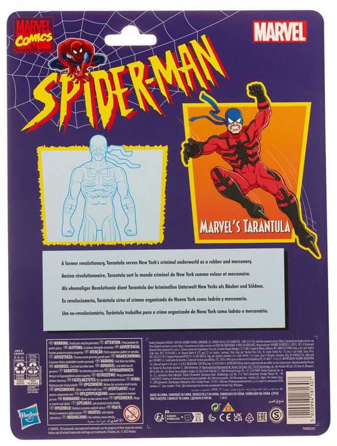 Tämä 15 cm korkea, 15 tuuman kokoinen Marvel Legends -keräilyhahmo on suunniteltu näyttämään Tarantulalta Marvelin Amazing Spider-Man -sarjasta.