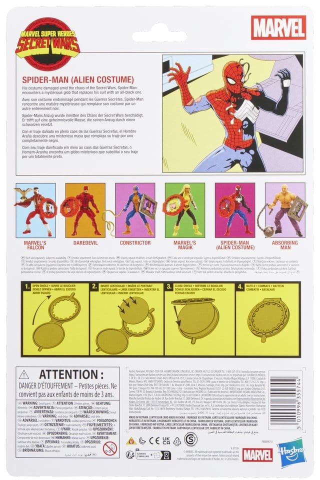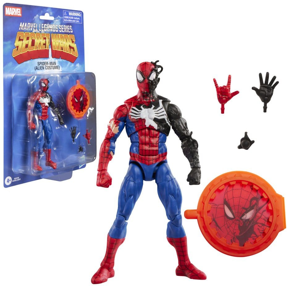 This Hasbro Marvel Legends action figure is designed to look like Spider-Man (Alien Costume) from Marvel’s Secret Wars II and Marvel Comics, faithfully recreating the iconic black suit.