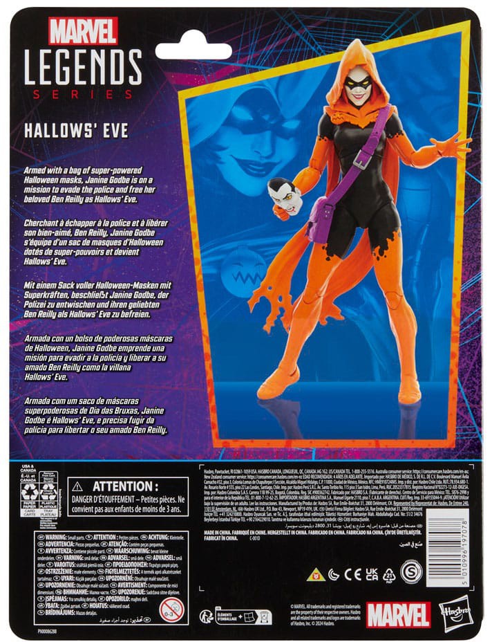 Bring the excitement and wonder of the Marvel Universe to your collection with Hasbro Marvel Legends Hallows' Eve figure! This collectible figure is detailed to look like the character from Marvel's Spider-Man and Hallows' Eve comics. 6-inch scale Marvel figures are fully articulated with poseable head, arms, and legs. Marvel action figure set comes with 7 accessories, including 2 sets of alternate hands, wearable bag, and 2 Halloween masks. Hasbro Marvel action figures' 6 inch scale make them great for posing and displaying in fans' collections. Reimagine Spider-Man comics-inspired scenes on your shelf with Marvel Legends action figures.