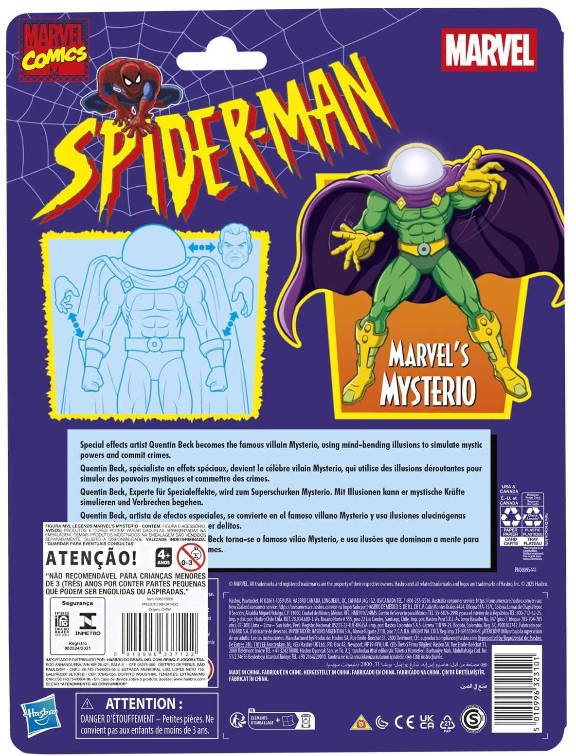 Hasbro esittelee Marvel Legends Series -sarjan Mysterio-hahmon, joka perustuu hänen ulkonäköönsä sarjassa Spider-Man: The Animated Series. Hahmo on noin 15 cm korkea ja sisältää useita nivelpisteitä dynaamisiin asentoihin. Premium-tason muotoilu vastaa uskollisesti animaatiosarjan tyyliä. Mukana tulee vaihtoehtoinen pää ilman kypärää (Quentin Beckin kasvot), kaksi ylimääräistä kättä ja kolme tehosteosaa (kaksi savukierrettä ja yksi pääkalloefekti). Toimitetaan retro-tyylisessä blisteripakkauksessa kuvituksineen. Rajoitettu erä.