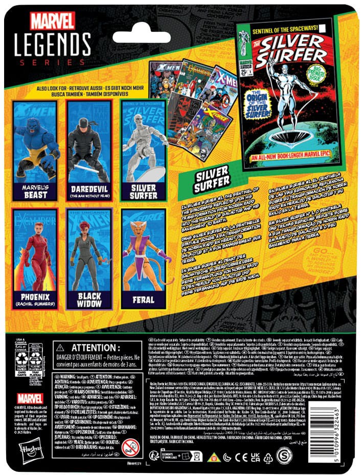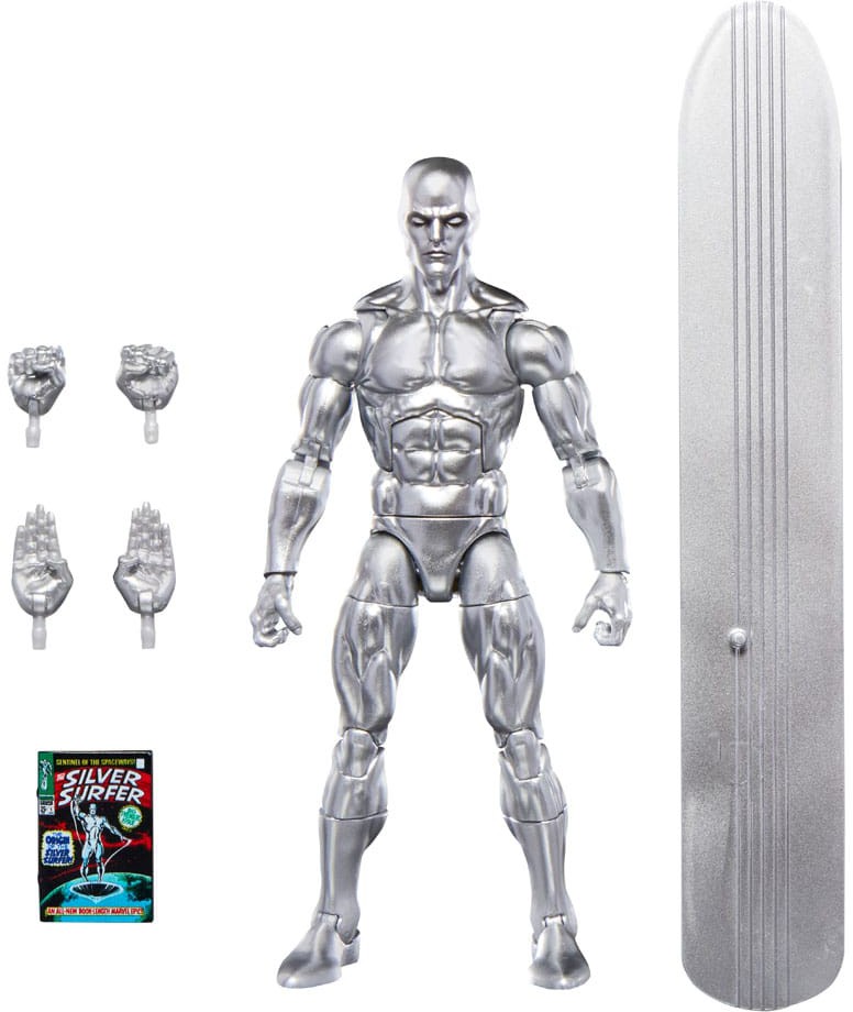 Bring the excitement and wonder of the Marvel Universe to your collection with the Hasbro Marvel Legends Silver Surfer figure! Detailed to look like the character's appearance in Marvel's Silver Surfer #1 (1968) and Fantastic Four comics, this collectible 6-inch scale Marvel figure is fully articulated with premium design and poseable head, arms, and legs. This Marvel action figure set comes with 6 accessories, including 2 alternate hands, an alternate head, as well as a 6-inch scale plastic comic book accessory featuring the cover of Silver Surfer #1 (1968). Hasbro Marvel action figures' 6-inch scale make them great for posing and displaying in fans' collections. Reimagine comics-inspired scenes on your shelf with Marvel Legends action figures and Marvel collectibles.