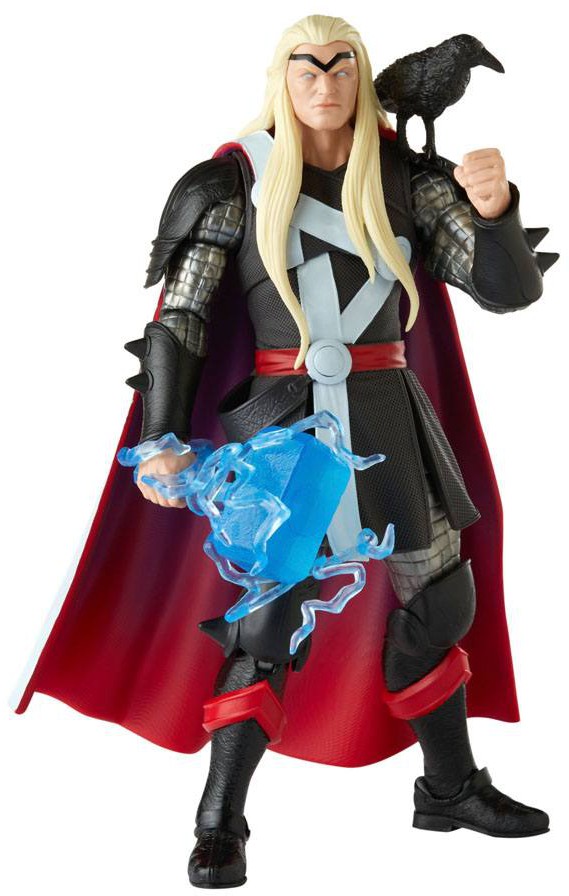 PREMIUM ARTICULATION AND ACCESSORIES: This 6-inch Legends Series Thor figure features premium detailing and accessories, including alt hands, Mjolnir and attachable lightning FX, and the 2 Asgardian Ravens, Hugin and Munin!