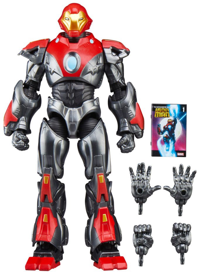 Bring the excitement and wonder of the Marvel Universe to your collection with Hasbro Marvel Legends Ultimate Iron Man figure! Detailed to look like the character’s appearance in Marvel's Ultimate Iron Man #1 (2005), this collectible 6-inch scale Marvel figure is fully articulated with premium design and poseable head, arms, and legs. This Marvel action figure set comes with 5 accessories, including 4 alternate hands, as well as a 6-inch scale plastic comic book accessory featuring the cover of Ultimate Iron Man #1 (2005). Hasbro Marvel action figures' 6 inch scale make them great for posing and displaying in fans' collections. Reimagine comics-inspired scenes on your shelf with Marvel Legends action figures and Marvel collectibles.