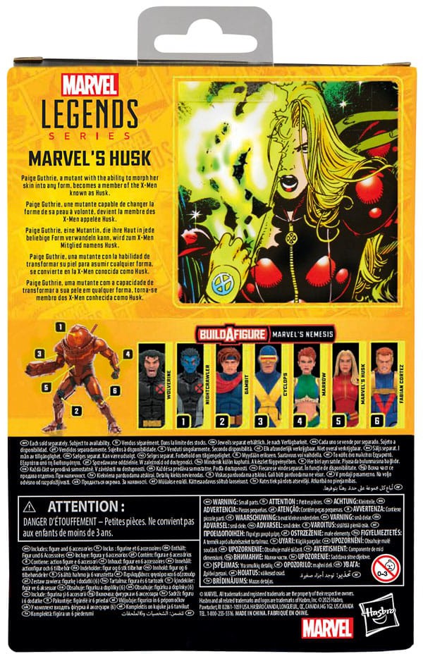 Bring the excitement and wonder of the Marvel Universe to your collection with Hasbro Marvel Legends Marvel's Husk X-Men figure! This collectible 6-inch scale Marvel figure is detailed to look like the character from Marvel's X-Men comics. Marvel's Husk action figure is fully articulated with premium design and poseable head, arms, and legs. Marvel action figure set comes with 4 accessories and 2 Marvel's Nemesis Build-A-Figure piece. Complete the additional figure with Marvel Legends X-Men action figures Nightcrawler, Gambit, Cyclops, Marrow, and Fabian Cortez. (Each sold separately. Subject to availability.) Hasbro Marvel action figures' 6 inch scale make them great for posing and displaying in fans' collections. Reimagine X-Men comics-inspired scenes on your shelf with Marvel Legends action figures and Marvel collectibles.