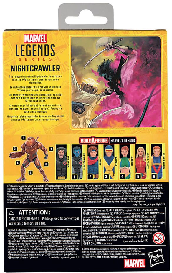 Bring the excitement and wonder of the Marvel Universe to your collection with Hasbro Marvel Legends Nightcrawler X-Men figure! This collectible 6-inch scale Marvel figure is detailed to look like the character from Marvel's Uncanny X-Force comics. Nightcrawler action figure is fully articulated with premium design and poseable head, arms, and legs. Marvel action figure set comes with 5 accessories and 2 Marvel's Nemesis Build-A-Figure pieces. Complete the additional figure with Marvel Legends X-Men action figures Gambit, Cyclops, Marrow, Marvel's Husk, and Fabian Cortez. (Each sold separately. Subject to availability.) Hasbro Marvel action figures' 6 inch scale make them great for posing and displaying in fans' collections. Reimagine X-Men comics-inspired scenes on your shelf with Marvel Legends action figures and Marvel collectibles.