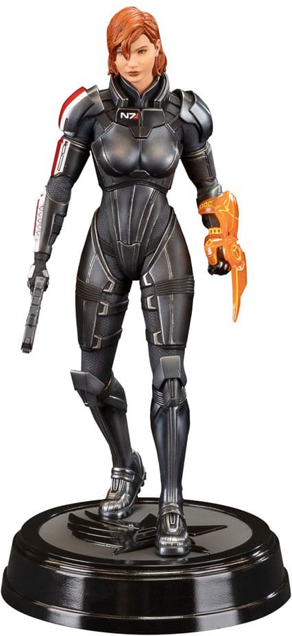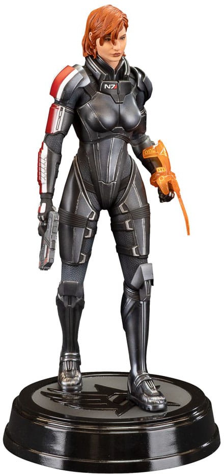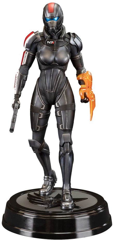 this PVC figure comes with two swappable heads for display with or without her N7 helmet. Jane Shepard is 9 inches tall, including the base which features the Paragon/Renegade emblem.