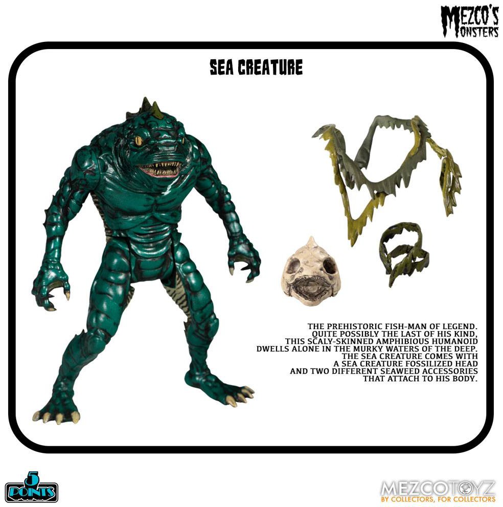 - Sea Creature - The prehistoric fish-man of legend. Quite possibly the last of his kind, this scaly-skinned amphibious humanoid dwells alone in the murky waters of the deep. The Sea Creature comes with a Sea Creature fossilized head and two different seaweed accessories that attach to his body.
