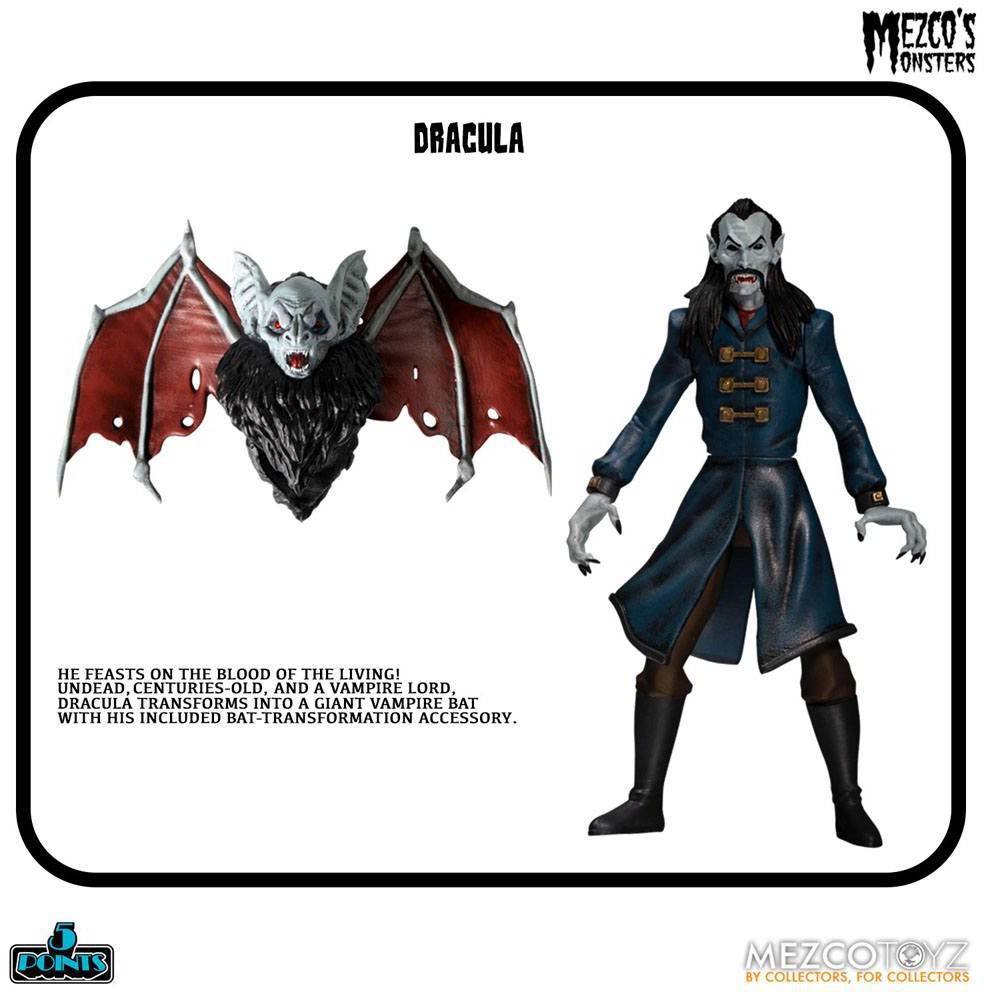- Dracula - He feasts on the blood of the living! Undead, centuries-old, and a Vampire Lord, Dracula transforms into a giant vampire bat with his included Bat-transformation accessory.
