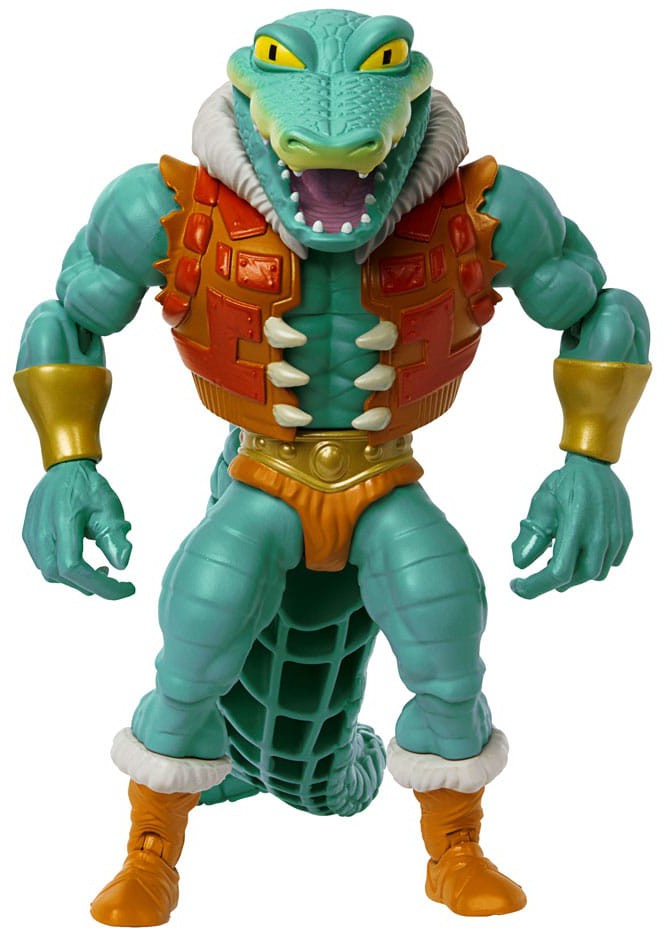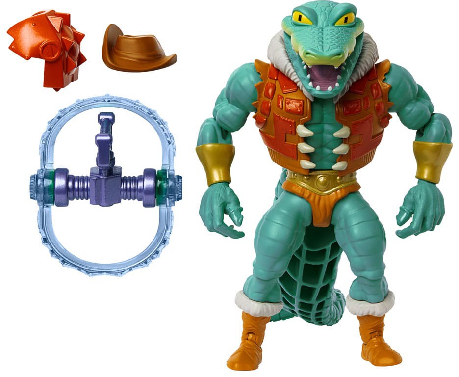 Mattelin "Turtles of Grayskull" -sarjasta tulee tämä erittäin nivelletty ja täysin liikuteltava toimintahahmo. Se on noin 14 cm pitkä, ja sen mukana toimitetaan lisävarusteet läpipainopakkauksessa.
