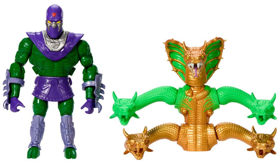 Mattelin ”Turtles of Grayskull” -sarjasta tulee tämä erittäin nivelletty ja täysin liikuteltava toimintahahmo. Se on noin 14 cm pitkä, ja sen mukana toimitetaan lisävarusteet läpipainopakkauksessa.