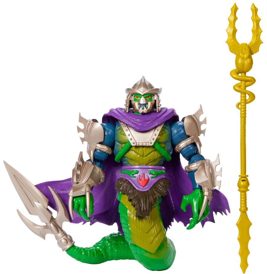 Mattelin ”Turtles of Grayskull” -sarjasta tulee tämä erittäin nivelletty ja täysin liikuteltava toimintahahmo. Se on noin 14 cm pitkä, ja sen mukana toimitetaan lisävarusteet läpipainopakkauksessa.