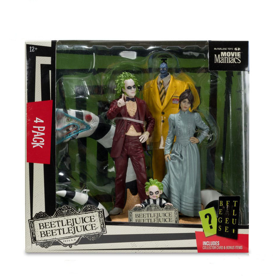 Esitä kysymyksesi tuotteesta "Movie Maniacs: Beetlejuice Beetlejuice - Beetlejuice, Astrid, Bob the Shrinker and Baby Beetlejuice".