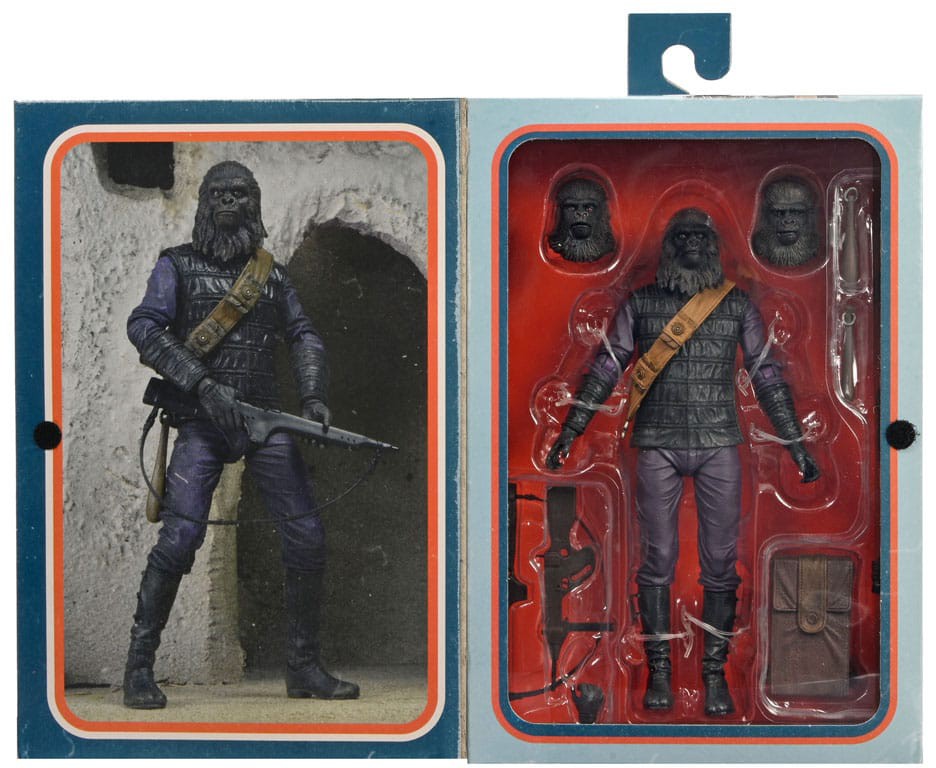 Build your Gorilla Army and defend against wild humans with this Planet of the Apes Ultimate action figure! The Gorilla Solider from the beloved 1968 film is getting NECA's "Ultimate" treatment as a 7-inch scale action figure with an arsenal of accessories: three interchangeable heads, two batons, catching pole, rifle, belt, machine gun, removable backpack, and alternate hand. Comes in collector-friendly, Ultimate five-panel window box packaging.