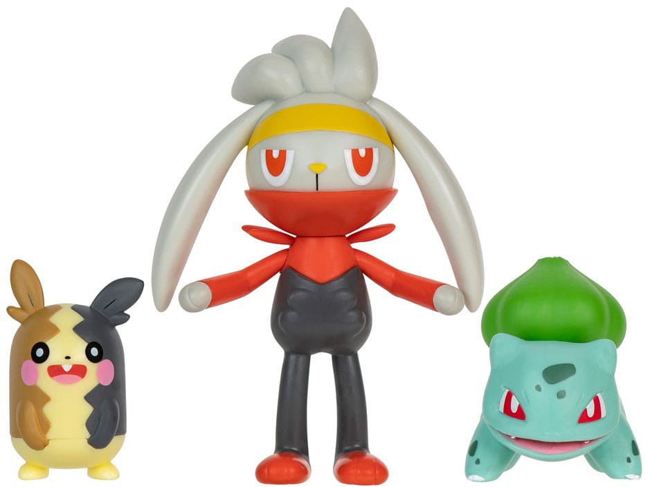 Pokémonin "Battle Figure Set" -sarjasta tulee tämä pakkaus, jossa on 3 yksityiskohtaista hahmoa. Ne ovat n. 5 cm korkeita ja tulevat läpipainopakkauksessa.