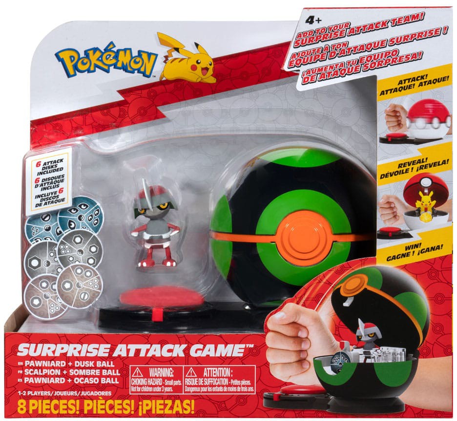 Esitä kysymyksesi tuotteesta "Pokémon Surprise Attack Game - Pawniard with Dusk Ball".