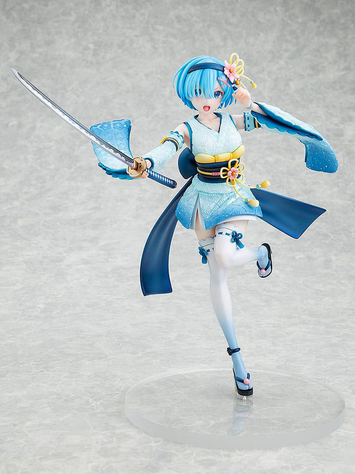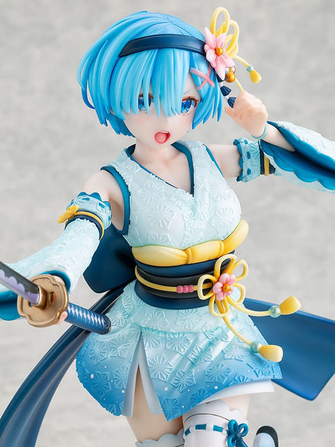 A figure of Rem from "Re:ZERO Starting Life in Another World" clad in an original Japanese-style outfit is here! She is sculpted in a pose with a sword in her hand, and her dynamic outfit can be enjoyed from all angles. The fabric sections of the outfit are sculpted with intricate pentagonal patterns, and the vivid gradations and pearlescent paints give it a glamorous and elegant finish.