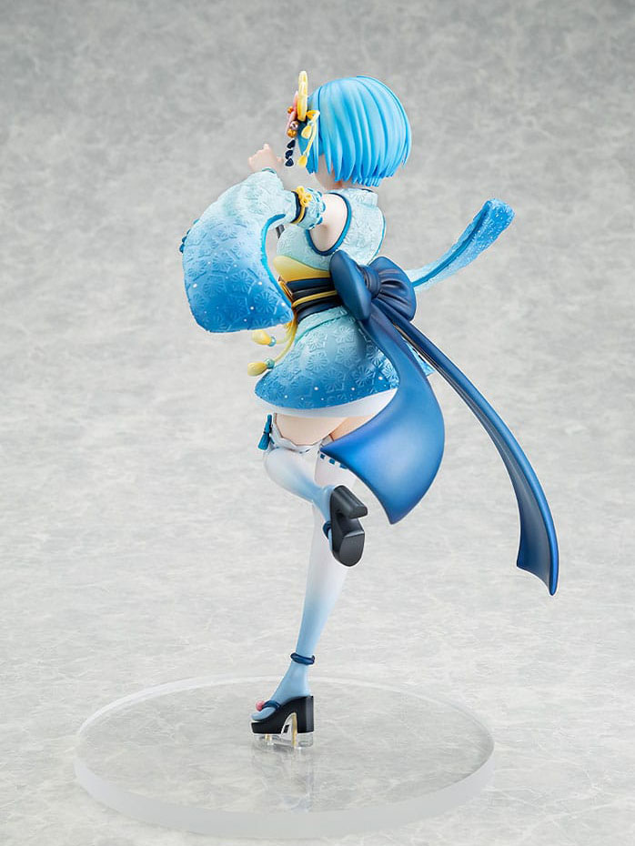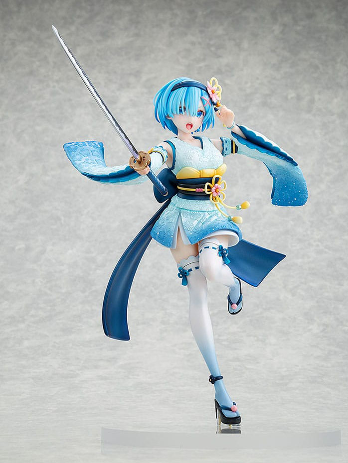 ”Re:ZERO Starting Life in Another World” -elokuvan Remin hahmo alkuperäiseen japanilaistyyliseen asuun pukeutuneena on täällä! Hänet on veistetty poseeraamaan miekka kädessään, ja hänen dynaamisesta asustaan voi nauttia kaikista kuvakulmista. Puvun kangasosat on veistetty monimutkaisilla viisikulmaisilla kuvioilla, ja eloisat sävyt ja helmiäisvärit antavat puvulle lumoavan ja tyylikkään lopputuloksen.