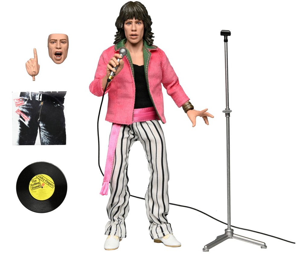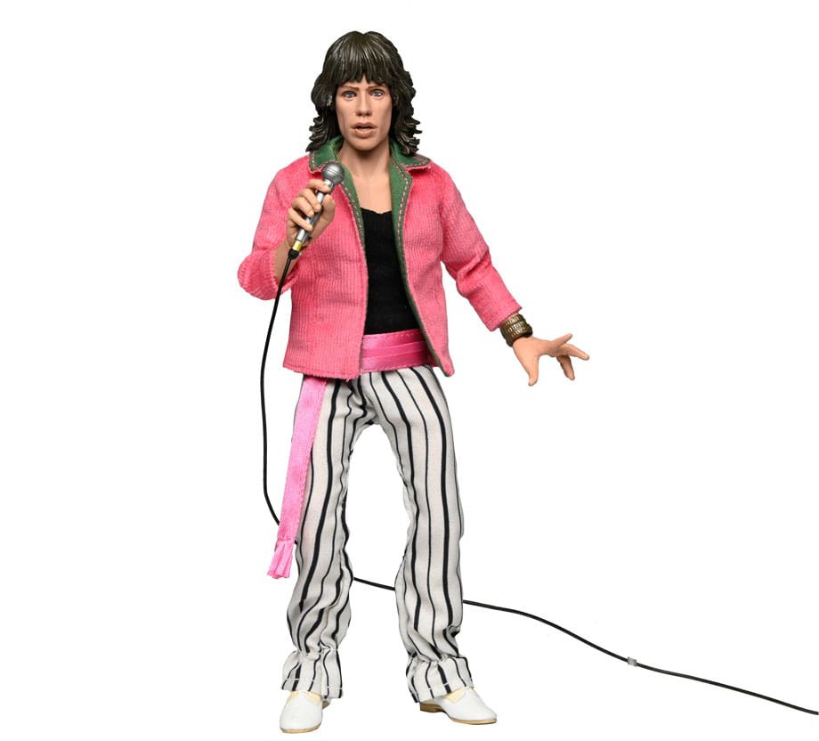Hahmolla on räätälöidyt vaatteet 70-luvun live-esiintymisistä inspiroituneessa tyylissä, ja täysin nivelöity 20 cm:n figuuri tuo Mick Jaggerin sähköisen lavaesiintymisen eloon.
