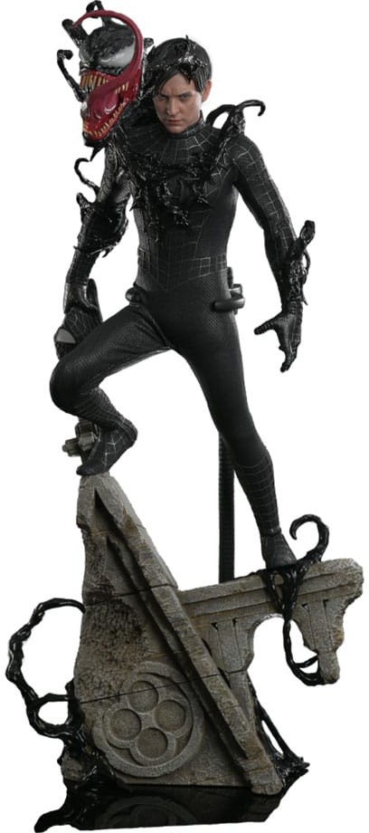 Peter Parkerin seikkailujen kunniaksi Sideshow ja Hot Toys esittelevät kokoelmahyllyysi Hämähäkkimiehen (musta puku) 6. mittakaavan keräilyfiguurin ja dioraamafiguurialustan, joka vangitsee valkokankaalta kaupunkikohtauksen symbiootti-olennon kanssa.