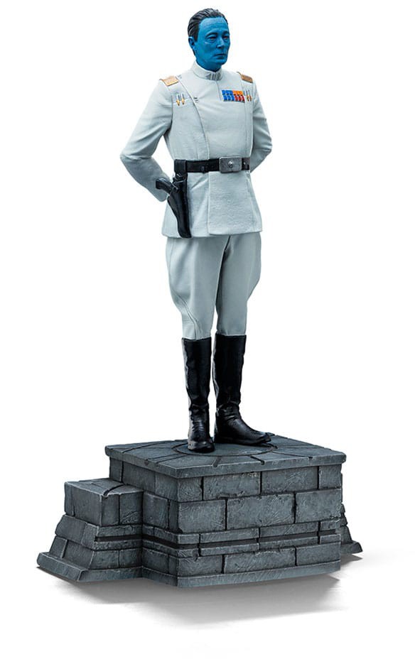 Varhaisessa urassaan Mitth'raw'nuru-nimellä tunnettu Chiss-lajiin kuuluva Thrawn, sinisine ihoineen ja punaisine silmineen, tunnettiin loistavana ja armottomana strategina. Hänet on kuvattu lepäävässä sotilasasennossa, kädet selän takana, yllään valkoinen upseerin univormu Chimaera-aluksen komentajana. Oikealla vyöllään hän kantaa charric-asetta. Patsas seisoo korotetulla, kivimäisellä jalustalla, joka viittaa Great Mothers -hahmojen linnoitukseen. Iron Studios esittelee "Grand Admiral Thrawn - Star Wars - Art Scale 1/10" -patsaan, jossa tämä pelätty ja arvostettu hahmo esiintyy kuten Ahsoka-sarjassa Disney+:lla.