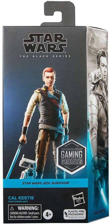 The 6-inch-scale Black Series figure is detailed to look like the Cal Kestis character from Star Wars Jedi: Survivor, featuring premium detail and multiple points of articulation.