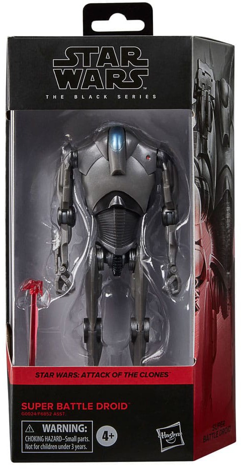 Star Wars The Black Series includes 6 inch action figures, vehicles, and roleplay items from the 40-plus-year legacy of the Star Wars Galaxy, letting fans create galactic scenes with a faithfulness to Star Wars comic books, movies, and series. This Star Wars action figure is detailed to look like a Super Battle Droid from Star Wars: Attack of the Clones.