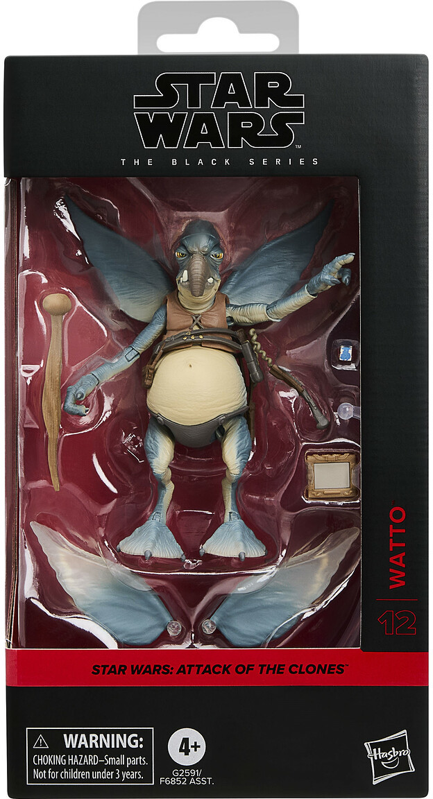 Ikkunallinen pakkaus tekee hahmosta näyttävän myös esillä. Watto on tunnettu Toydarian-roskakauppias ja intohimoinen uhkapelaaja, joka osti Shmi Skywalkerin ja hänen poikansa Anakin Gardulla the Hutilta ja usein löi vetoa Anakinia vastaan tämän podrace-kilpailuissa.