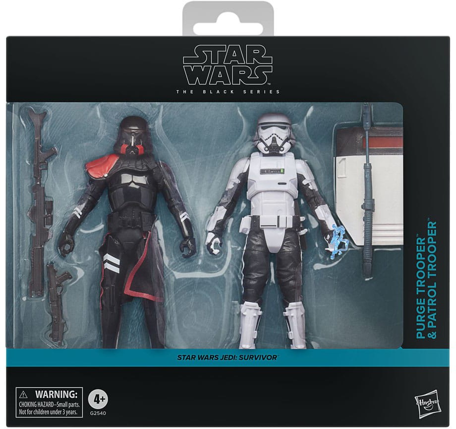 Tämä Hasbron Star Wars -toimintafiguurisetti on yksityiskohtaisesti suunniteltu näyttämään Purge Trooper- ja Patrol Trooper -hahmoilta pelistä Star Wars Jedi: Survivor.