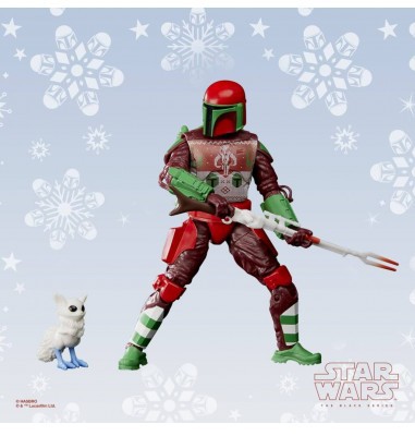 The 6-inch-scale Black Series Mandalorian Warrior (Holiday Edition) action figure features premium detail, multiple points of articulation, and a special holiday-themed deco.