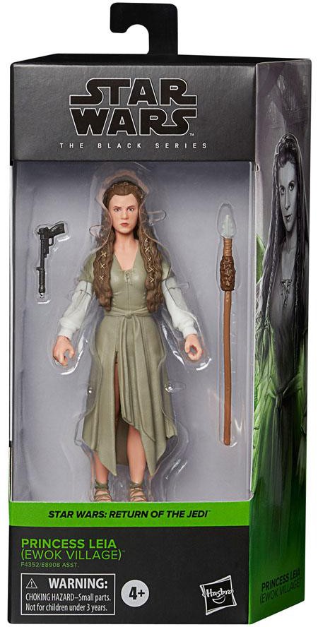 The 6-inch-scale Black Series figure is detailed to look like the Princess Leia (Ewok Village) character from Star Wars: Return of the Jedi, featuring premium detail and multiple points of articulation.