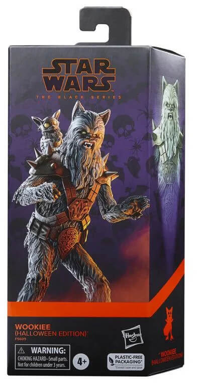 The 6-inch-scale Black Series Wookiee (Halloween Edition) action figure features premium detail, multiple points of articulation, and a special Halloween-themed deco.