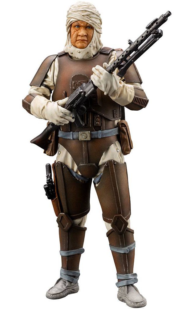 A KOTOBUKIYA Japanese import! Star Wars ARTFX+ Statues bring you all of the quality and detailing that you expect from an ARTFX release in a great smaller scale perfect for collecting! The series has already brought you amazing heroes, villains, and troopers from the classic trilogy and beyond, and now you can collect the bounty hunters summoned by Darth Vader to track down the Millennium Falcon in Star Wars Episode V: The Empire Strikes Back. The final bounty hunter to join the lineup is Dengar! A human from the planet of Corellia, Dengar is a seasoned bounty hunter who prefers to take down his targets directly with destructive force.