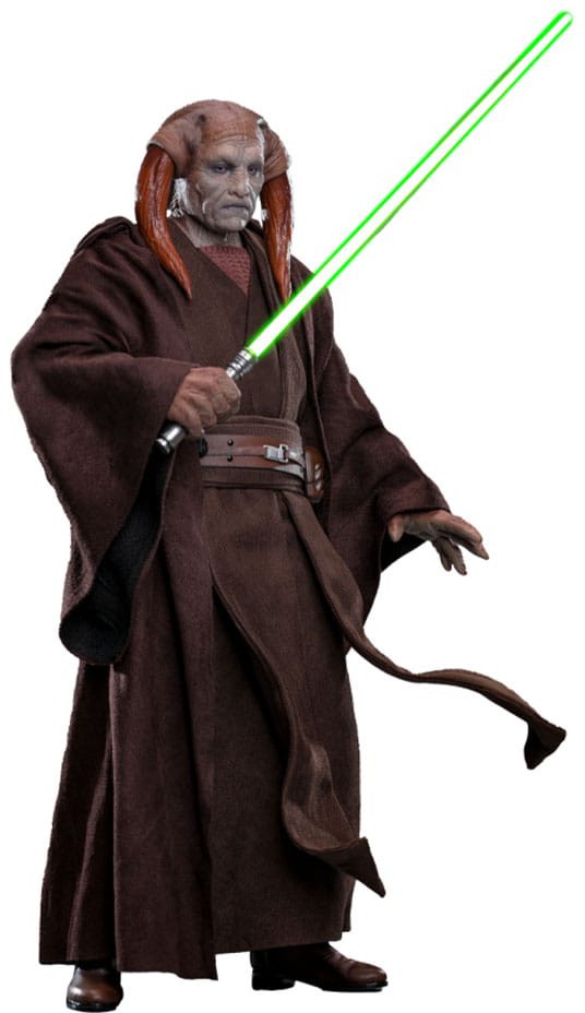 Hot Toys is proud to unveil the 1/6th scale Saesee Tiin Collectible Figure, a tribute to this noble Jedi Master. Crafted with a brand-new head sculpt featuring a rolling eyeball mechanism and screen-accurate facial patterns, the figure captures Tiin's distinctive appearance and textured skin. Equipped with five interchangeable hands and three gloved hands, including hands for holding the lightsaber and using the Force, this figure offers versatile display options. Tiin's costume is faithfully tailored, featuring a wired belt-embedded outer robe layered over an undershirt, pants, long boots, and a wired Jedi robe to recreate his Jedi Master look. Weapons and accessories include a green LED-lighted lightsaber with switchable blades and forearm armor. Notably, the forearm armor pieces are inspired by Tiin's appearance in the Clone Wars animated series.