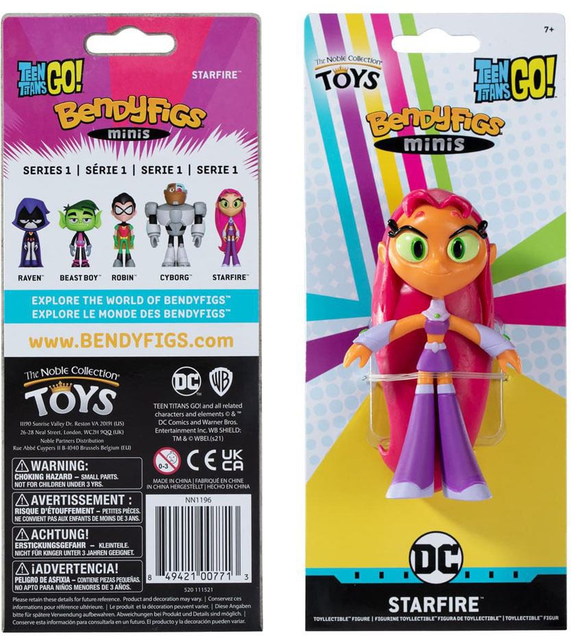 Five Mini Bendyfigs for the popular DC Productions & Warner Bros. Animation cartoon show Teen Titans Go! which follows the adventures of the young Titans: Beast Boy, Robin, Cyborg, Raven and Starfire.