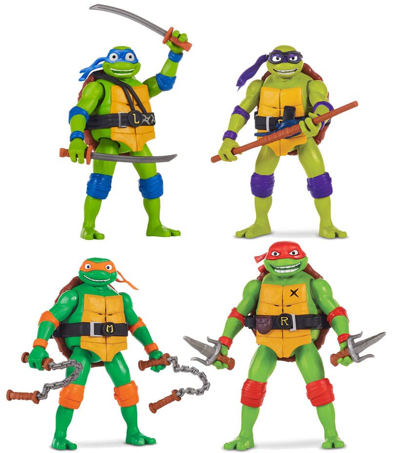 Cowabunga - Teini-ikäiset mutanttininjakilpikonnat ovat palanneet! Neljä yhtä vahvaa teinisankaria, joilla on vertaansa vailla olevat kyvyt hyvän ja pahan välisessä taistelussa! Setti koostuu neljästä 15 cm pitkästä Shouts Deluxe -toimintafiguurista aseineen elokuvamaisessa ulkoasussa. Jokaisella hahmolla on ääni ja äänitehosteet.
