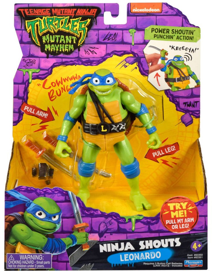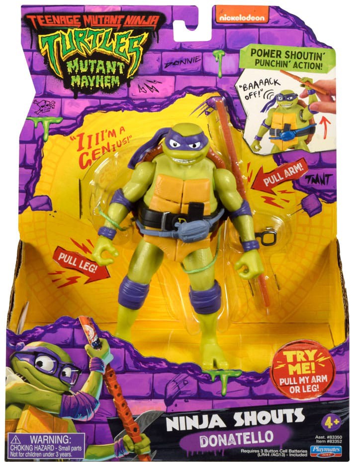 Cowabunga-The Teenage Mutant Ninja Turtles are back! 4 equally strong teenage heroes with unrivalled abilities in the battle of good versus evil! Set consists of one approx. 15cm tall Shouts Deluxe action figure, including weapon in film-accurate design. Each figure has voice and sound effects.