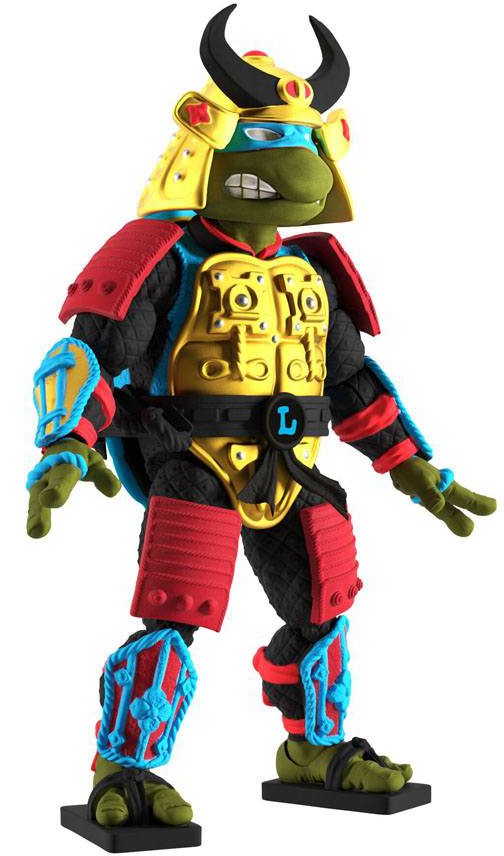 It's not all fun and games being a Teenage Mutant Ninja Turtle, and with his relentless studying and training, Leonardo leads by example as he and his brothers take on crime in the big city! This made-to-order 7" fully articulated Leo the Sewer Samurai ULTIMATES! Figure comes with alternate heads and hands and a variety of accessories, including his Wacky War Banner, Samurai shield & sheath, a slice of pizza, and a weapon rack with his shuriken, kunai, samurai claws, and katanas. Leonardo takes crime-fighting seriously, and any serious collector won't hesitate to add the Samurai Battle Commander to their Teenage Mutant Ninja Turtles ULTIMATES! lineup.