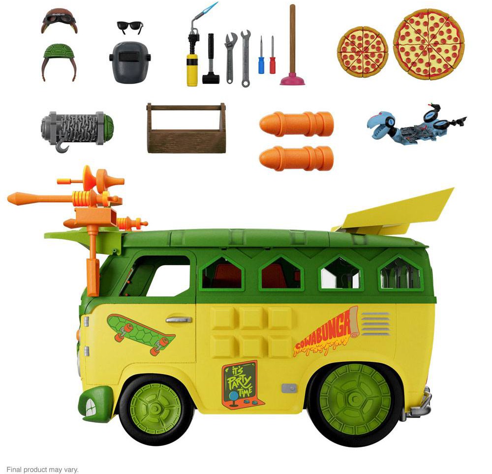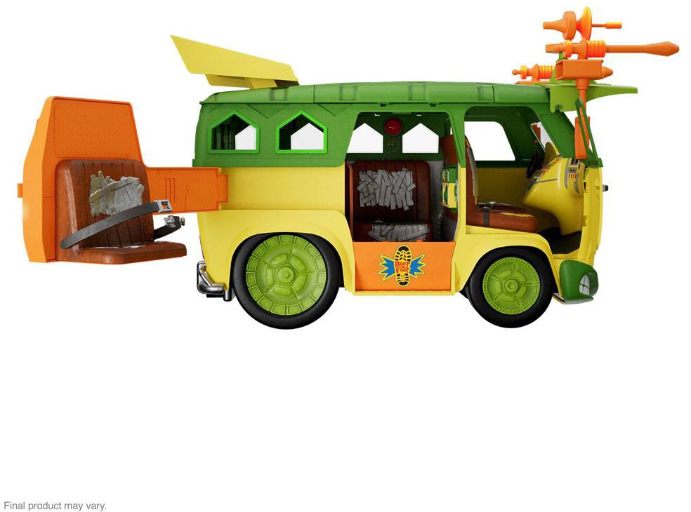 Time for the Teenage Mutant Ninja Turtles ULTIMATES! party to hit the road! Super7 is here to transport your TMNT ULTIMATES! collection to the next level with the Party Wagon! Measuring 20.25 inches long, 13.8 inches tall, and 12.5 inches wide, this is no regular Turtle hooptie; it's a bodacious ride that can get SIX ULTIMATES! figures from zero to sixty Foot Soldiers-stomped in no time flat! It's a good thing that the ULTIMATES! Party Wagon is so roomy inside because it comes with a wagon-load of Foot-fightin' tools and accessories. Plus, with an opening roof, a windshield that can either be opened safari-style or covered with armored protection, a swing out "Foot Tenderizer" side door, side & rear windows, winch with real steel chain, Whacko Bombs, and rolling wheels with real rubber tires, this Party Wagon gives the Ninja Turtles the sweetest crime-fighting ride around! The fight against Shredder and his evil minions moves fast and so should you if you want the chance to pre-order the limited edition Teenage Mutant Ninja Turtles ULTIMATES! Party Wagon!