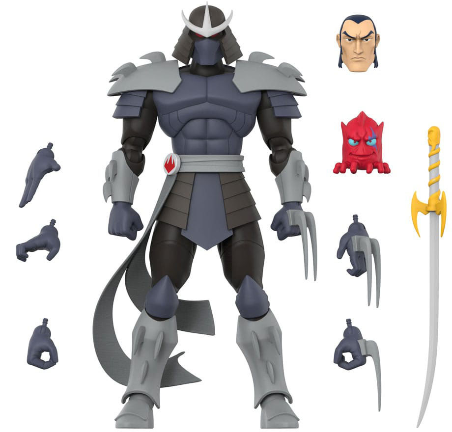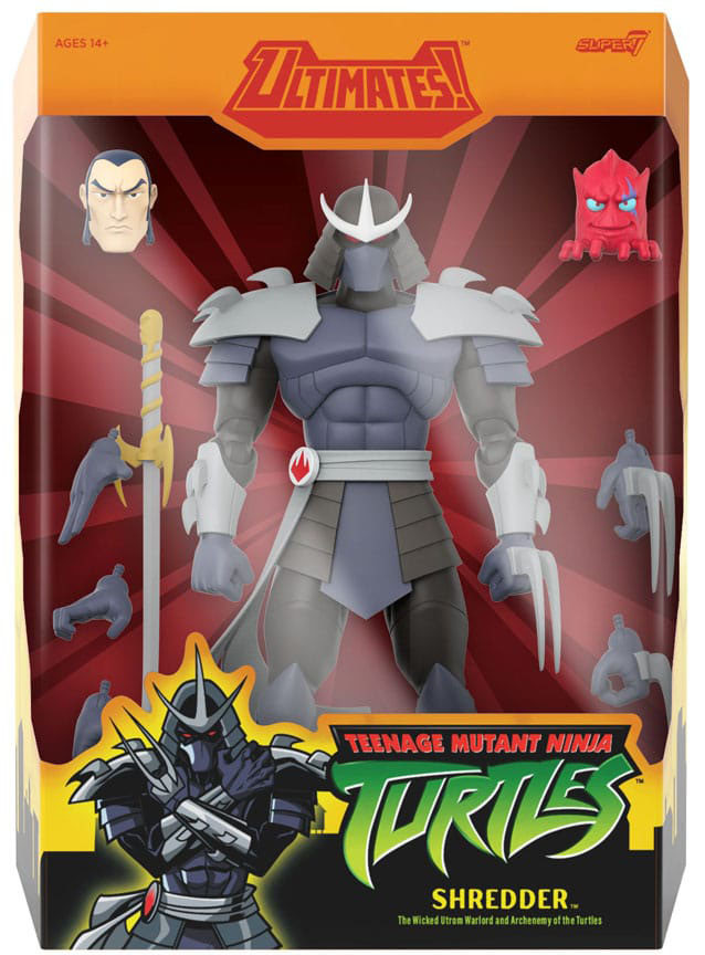 Unleash the ultimate villain in your TMNT collection with the new Shredder ULTIMATES! figure! Inspired by the dark, commanding presence of the Shredder from the 2003 TMNT animated series, this highly detailed 7" figure perfectly captures the ruthless mastermind's menacing aura. Featuring double-jointed elbows and knees and a wired soft goods belt for dynamic battle poses, intricate sculpting and premium paint detailing, and multiple interchangeable heads and hands, this Shredder figure is ready to dominate your collection. Packaged in collector-friendly window box packaging, it's perfect for display or play. Shredder comes equipped with the legendary Sword of Tengu and a Ch'Rell figure, giving you everything you need to recreate his most iconic moments as the ruthless leader of the Foot Clan and intergalactic tyrant. Whether he's clashing with the Turtles or plotting from the shadows, this Shredder figure brings the fierce intensity fans of the 2003 series know and love. Don't miss your chance to add the ultimate nemesis to your collection-get the 2003 Shredder ULTIMATES! today and let the battle for NYC begin!