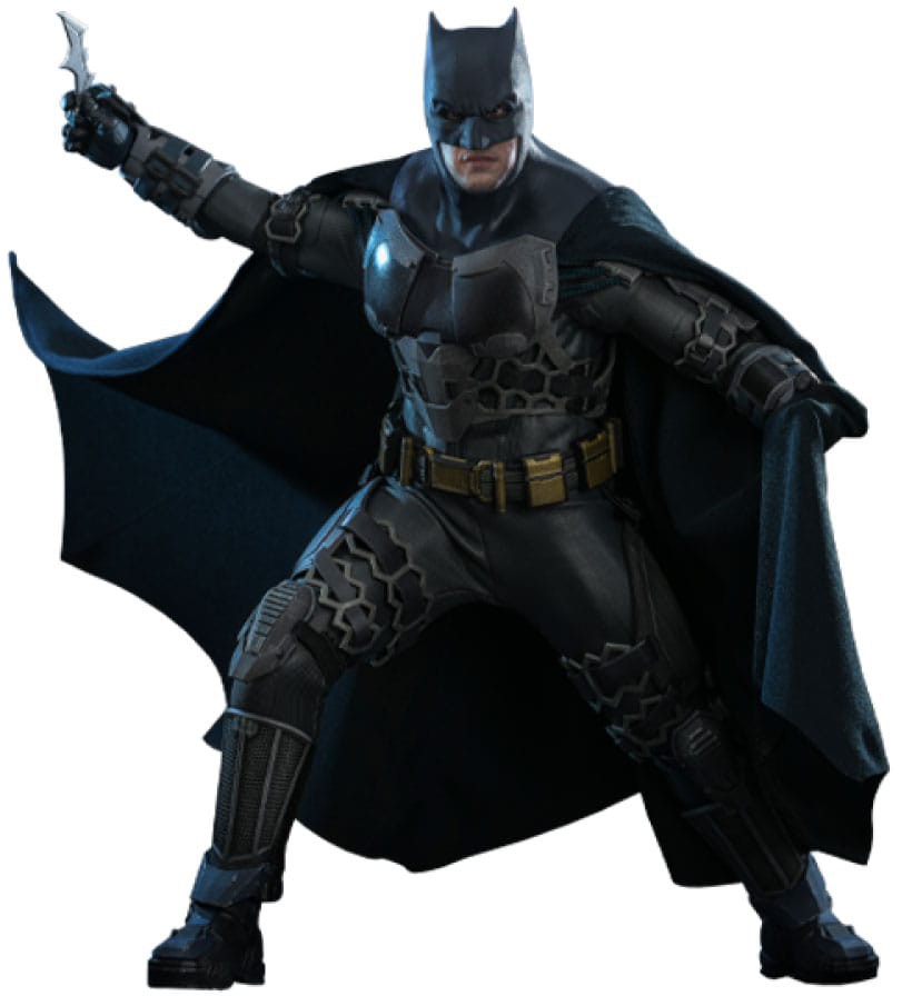 The highly detailed Batman collectible figure features a newly developed cowled head with separate rolling eyeballs and three interchangeable lower faces that capture different expressions, an extra cowled head with separate rolling eyeballs and seamless neck joint, plus a specialized body highlighting his muscular physique. The screen-accurate Batman outfit, in a silver-gray scheme embellished with distinct texture, shows signs of weathering and comes with adjustable armors around chest and foot, sculpted utility belt in metallic gold and wired fabric cape, detailed weapons including a grapple device and Batarangs, and a specially designed LED-lighted display stand with Batman logo.