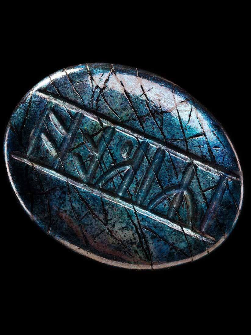 Gifted to Kili by his mother, this labradorite stone bore six runes etched onto its polished surface: Return to me. A constant reminder of a promise he made before their quest began.