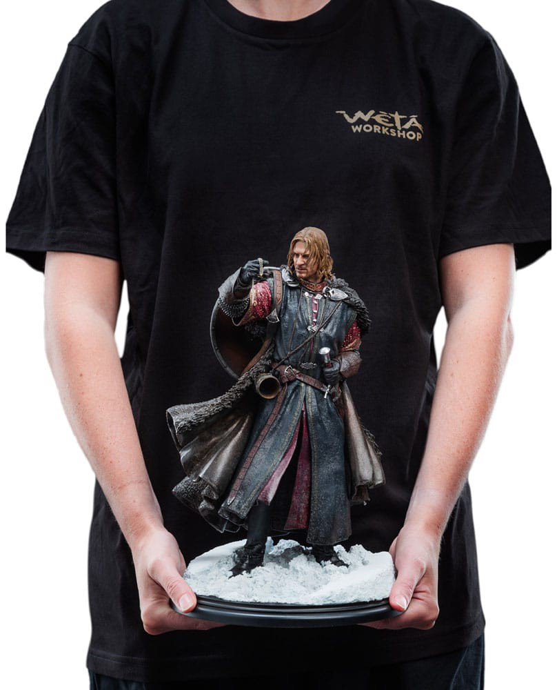 Every fold of his fur-lined cloak, every strain of contemplation upon his brow, every subtle glint of gold in the Ring's cruel form-this statue is more than a mere depiction. It is a study of a noble warrior's struggle, wrought with reverence and precision. From the sculptor's hand to your collection, this is Boromir as you have never seen him before, frozen in the moment that foreshadowed his tragic end.