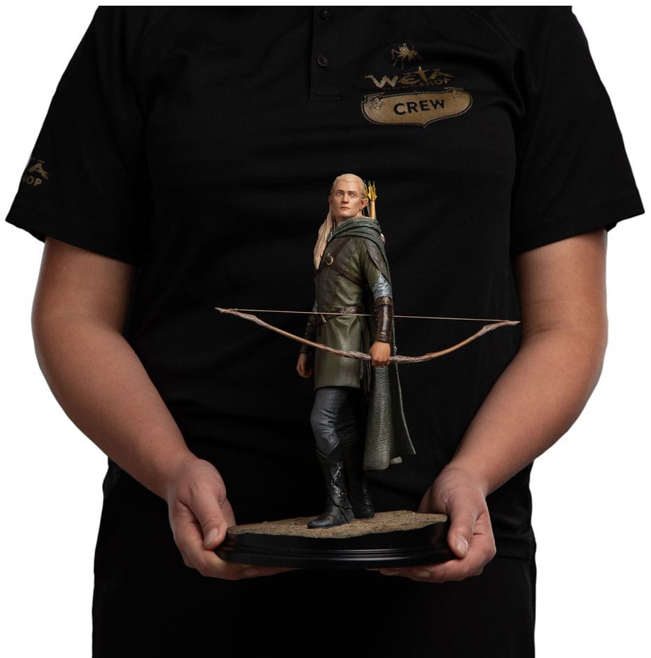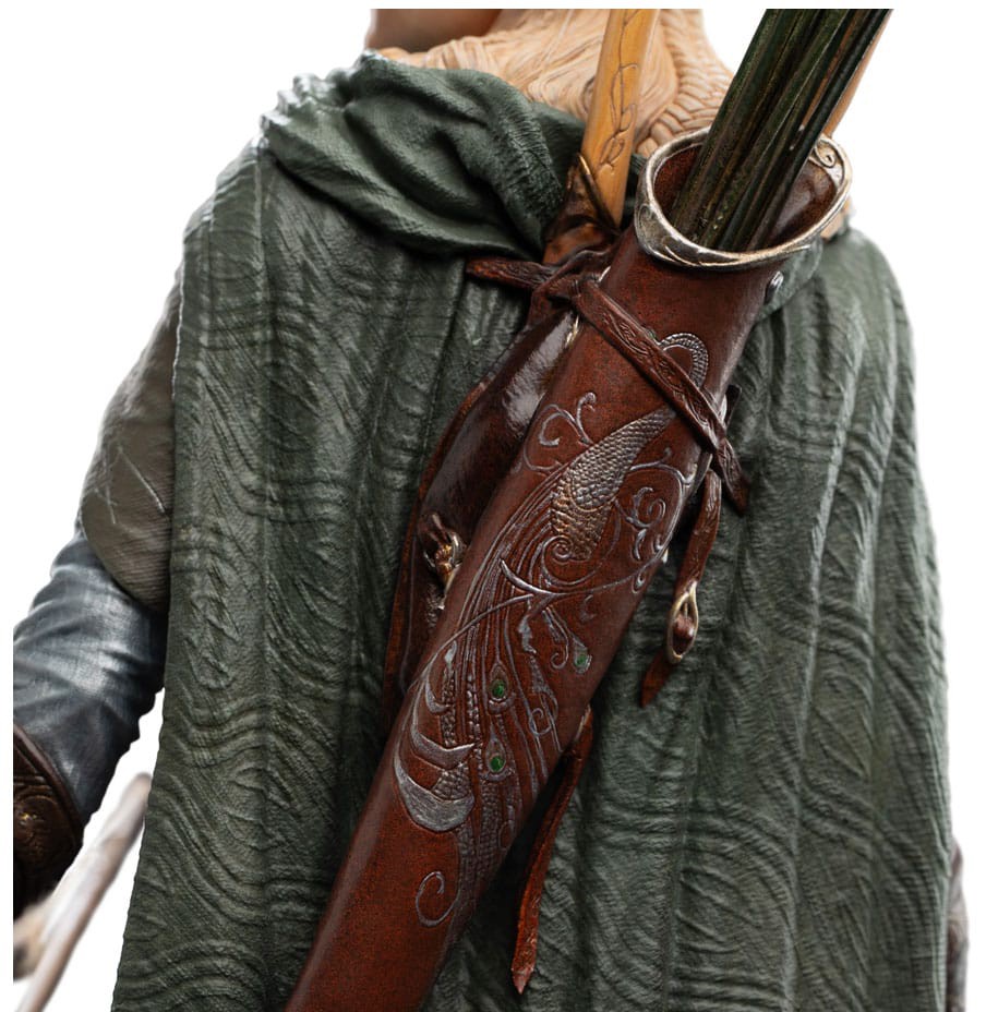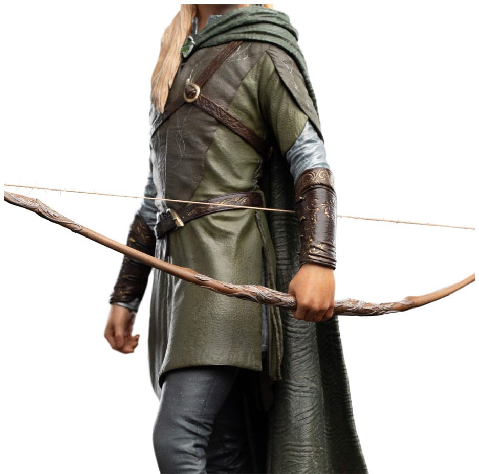 Aseta tämä patsas hyllyllesi ja anna Rohanin halki kulkevan takaa-ajon herätä eloon uudelleen. Jousi valmiina ja katse horisontissa Legolas seisoo kuten noina jännitteisinä päivinä, jolloin jokainen sydämenlyönti kantoi Sormuksen saattueen toivoa.