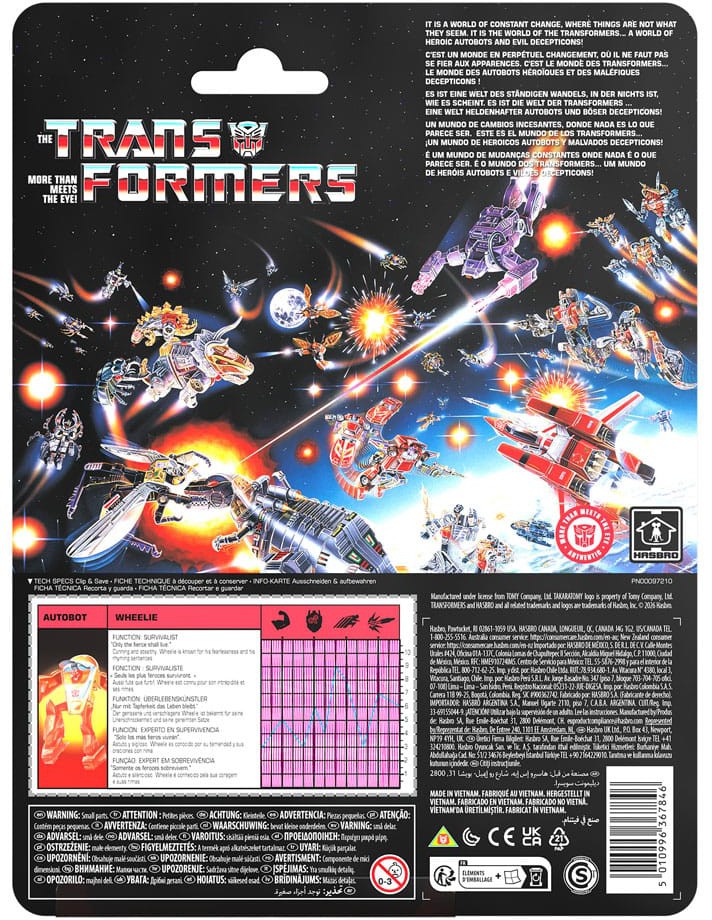 Tuo ripaus nostalgiaa Transformers-kokoelmaasi Retro G1 Autobot Wheelie -hahmolla. Tämä klassinen figuuri muuntuu robotista Cybertron-autoksi 23 vaiheessa ja on noin 11 cm korkea robottilassa.