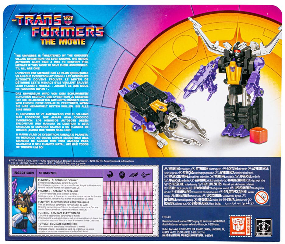 Re-experience the nostalgia of your favorite G1 action figures with the Transformers Retro Shrapnel toy! Shrapnel has a piercing battle cry that can be heard for miles. Alongside his fellow Insecticons, he relished the sounds of combat in the Battle of Autobot City. Transformers Retro G1 action figures are designed like the original releases, updated with deco based on the 1986 animated film, The Transformers: The Movie. Figures feature vintage styling, accessories, and exclusive package art and tech specs inspired by the 1986 movie. Clip out and save the on-box tech specs to share, then see how this figure stacks up against other heroic Autobots and evil Decepticons (each sold separately).