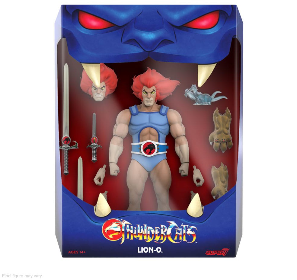 Lion-O™ may need to use the power of Sight-Beyond-Sight to help find his way through the trials and tribulations he'll face as leader of the ThunderCats! This 7" scale, highly articulated ThunderCats ULTIMATES! Lion-O™ figure is inspired by the classic animated television series and features an all new sculpt with battery-powered light-up LED eyes, premium paint detail, multiple interchangeable heads and hands, as well as an assortment of accessories including three different Sword of Omens (two with glow-in-the-dark effect), a two-headed Jade Dragon, and a pair of Claw Shields (one wearable). It's clear to see that this made-to-order light-up LED eyed Lion-O™ figure has the potential to be as important an addition to your collection as he is to the ThunderCats!