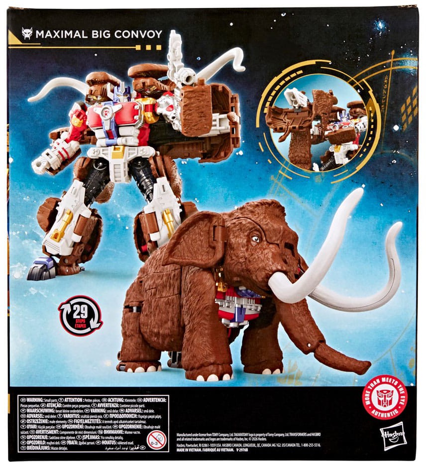 The 6.5-inch (16.5 cm) Leader Class figure converts from robot action figure to mammoth mode in 29 steps.