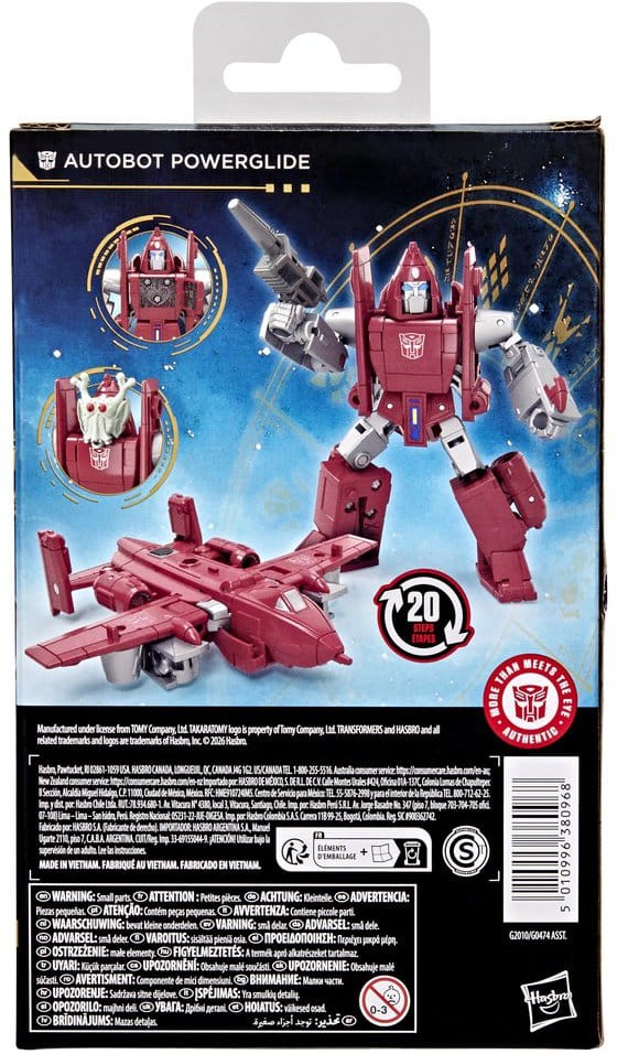 Yksityiskohtainen liikkuvuus sekä irrotettava blaster ja alien-naamio tekevät Autobot Powerglidesta näyttävän lisän mihin tahansa Transformers-kokoelmaan.