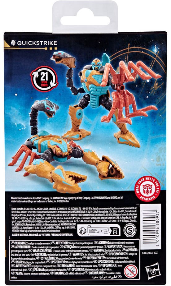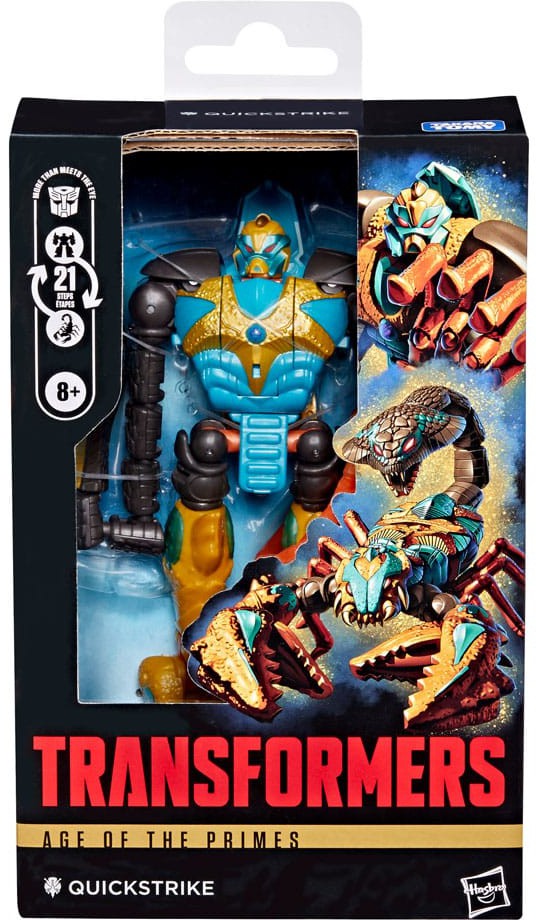 Koe Transformers-robottien eeppinen maailma Transformers Age of the Primes Quickstrike -hahmon kanssa! Tämä Deluxe Class -figuuri on noin 14 cm korkea ja muuntuu robotista skorpioniksi 21 vaiheessa.